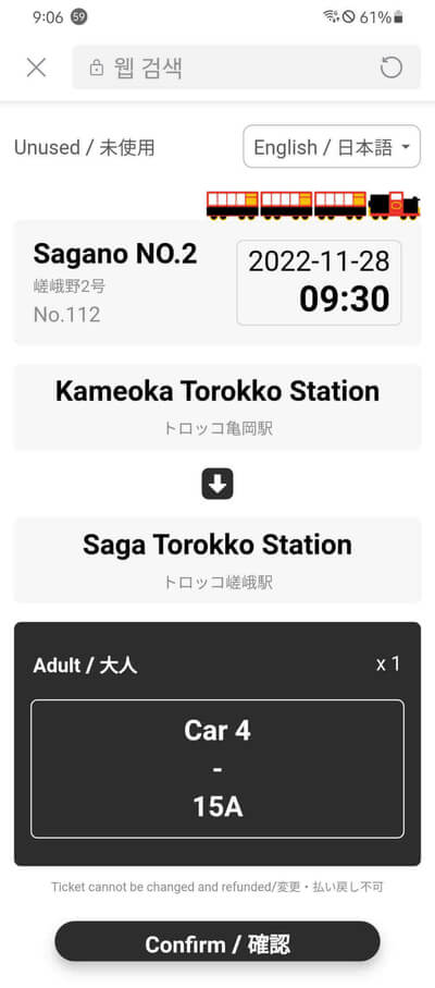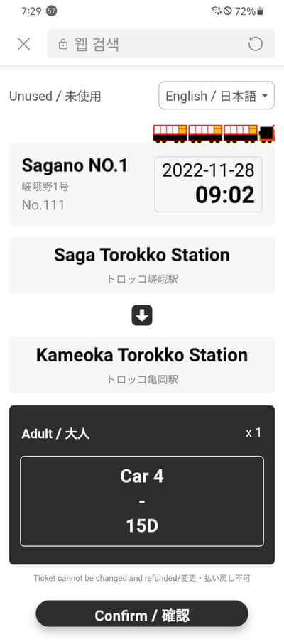 토롯코 열차는 꼭! 오픈 열차칸에 타야 됨을 실감했다. 예매 시, 이미 만석이라 일반칸을 예약했는데 여행 당일 열차 안에서 오픈 칸에 탄 사람들이 정말 부러웠다.
